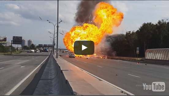 A Russian truck carrying 36 propane tank crashed on a highway. The crash ignited 36 tanks, as they exploded and flew like missiles an spectacular display that lasted for minutes. No one was killed, including the driver who quickly ran into the woods. But seriously what was that officer thinking ?